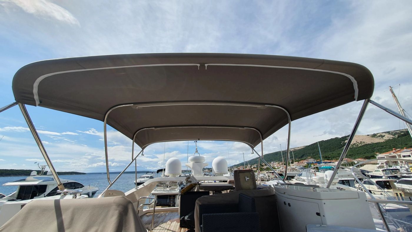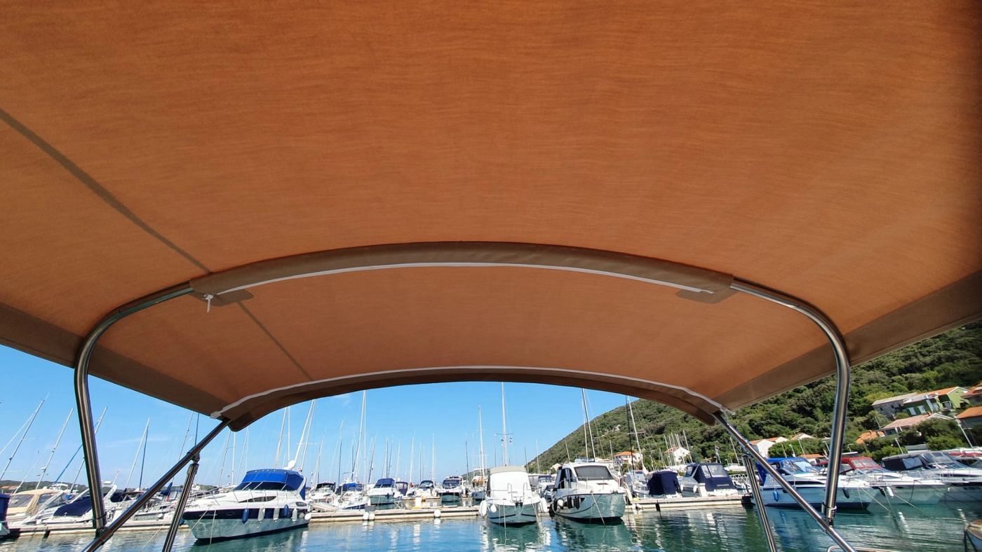 Bimini je sklopiva tenda koja stvara hlad u kokpitu i štiti od UV zračenja te ljetnih pljuskova. U Tendasolu izrađujemo bimini tende po mjeri – krojene prema geometriji broda, s kvalitetnom konstrukcijom i provjerenim platnima otpornima na sol i sunce.