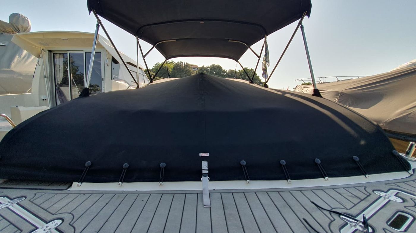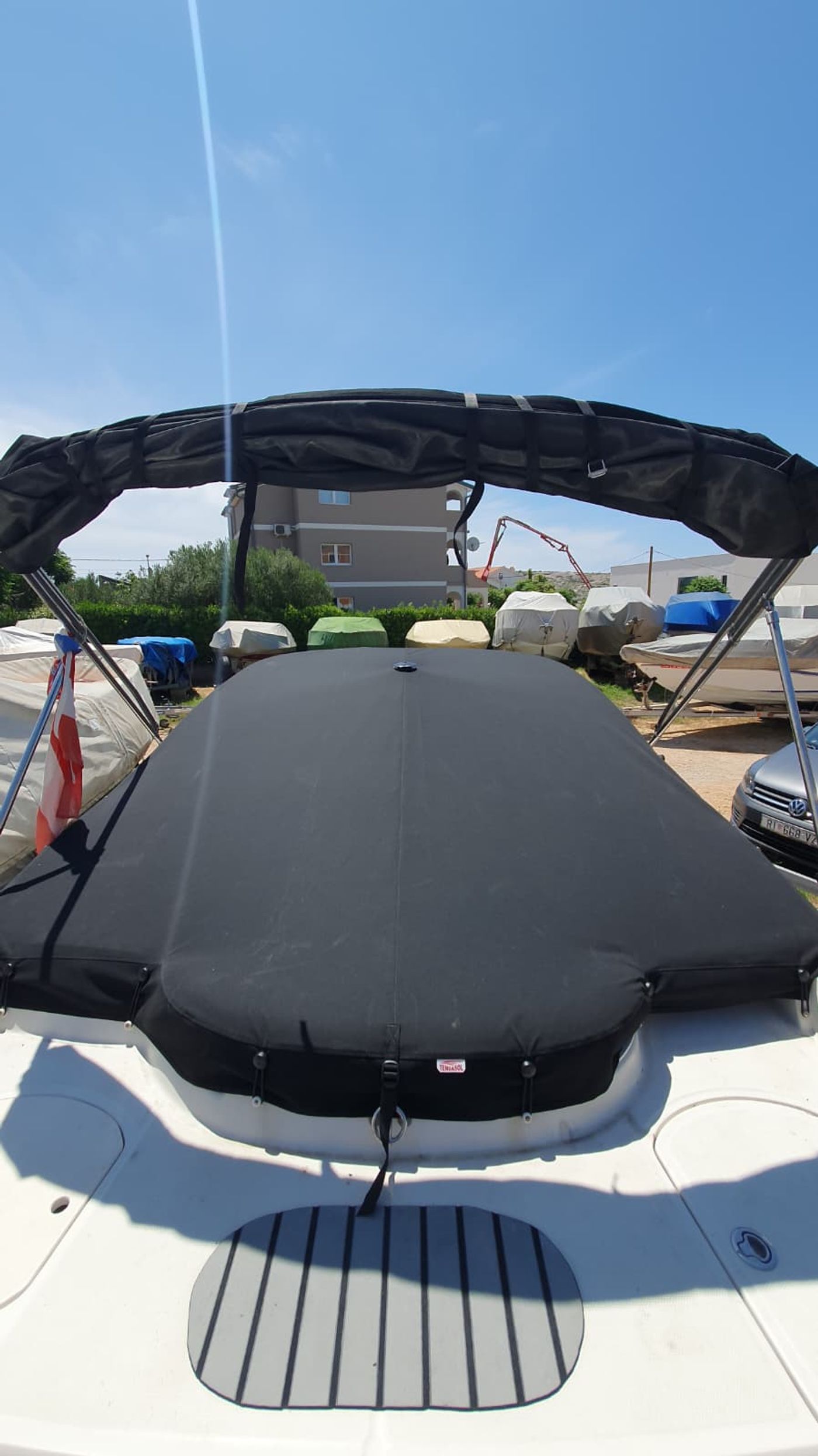 Kosa ljetna tenda je praktično rješenje za široku hladovinu tijekom najtoplijih dana. Izrađujemo je po mjeri kako bi dobro “sjedala” na plovilo, ostala stabilna i pružila učinkovitu zaštitu od jakog sunca i pregrijavanja.