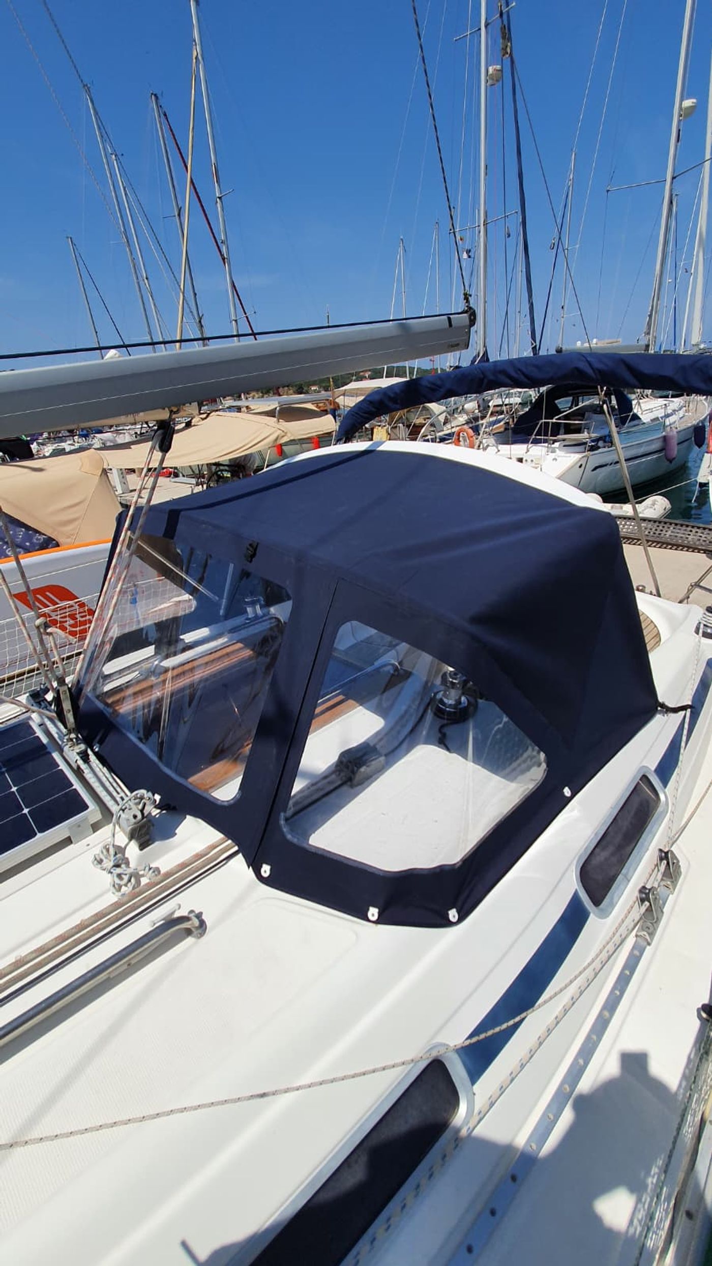 Sprayhood štiti kokpit od vjetra, valova i kiše te povećava sigurnost pri plovidbi. Izrađujemo sprayhood tende po mjeri, s naglaskom na čvrstoću, pravilne kutove i kvalitetne “prozore” koji zadržavaju preglednost i u zahtjevnijim uvjetima.